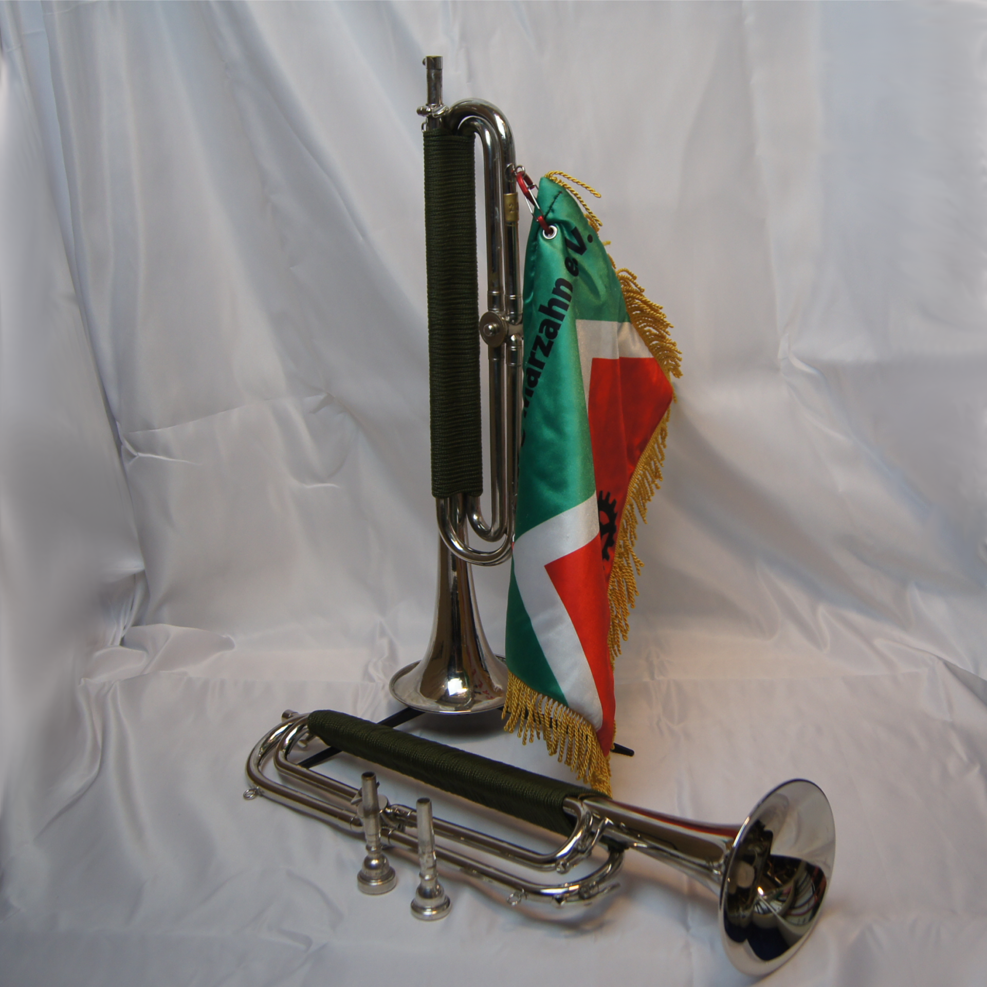 Die Trompete besitzt 3 Ventile, unsere Fanfare hingegen nur ein Ventil, durch welches man zwischen B-und Es-Dur wechseln kann.